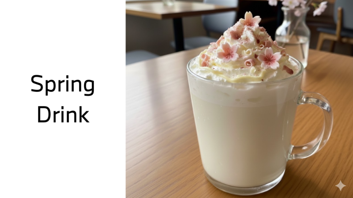 ホワイトチョコレートのまろやかな甘さと、ミルクのコクが溶け合うやさしい味わいのホワイトチョコレートラテ・春らしい桜風味がお花見にぴったりです。ショールームでゆっくりとお過ごしください。